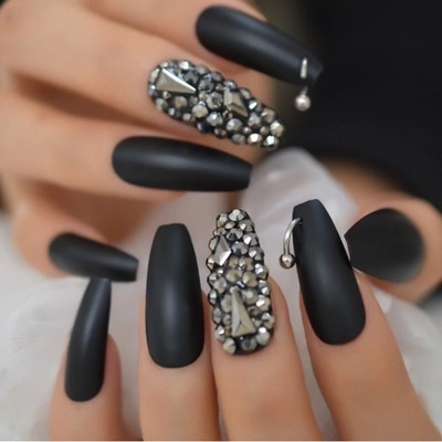 Trending Black Coffin Nails With Rhinestones / This content is imported from instagram. Just like a bold red pout, monotone red nails are guaranteed to make a statement. Black Coffin Nails With Rhinestones - This next nail idea features iridescent rhinestones.